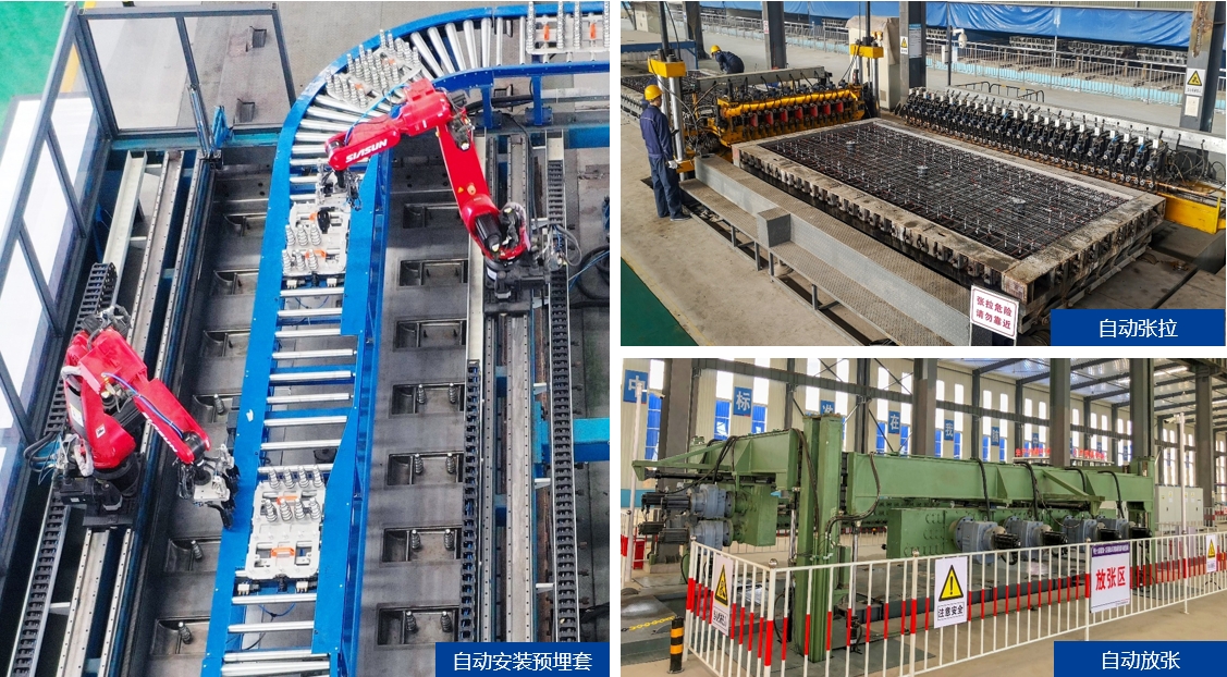 為高質(zhì)量高效率生產(chǎn)軌道交通用混凝土構(gòu)件,致力于自動化、智能化生產(chǎn),銀龍采用自主研發(fā)和與諸多科研院所合作模式,相繼研發(fā)成功高鐵軌道板自動化生產(chǎn)線、軌枕自動化生產(chǎn)線、盾構(gòu)管片自動化生產(chǎn)線、重載運輸AGV、軌道板3D檢測系統(tǒng)、自動清理模具、自動噴灑脫模劑、自動安裝預埋套管、自動張拉、自動養(yǎng)護、自動放張等自動化、信息化裝備。在保障銀龍自身軌道混凝土構(gòu)件產(chǎn)業(yè)發(fā)展同時,并向國內(nèi)外供應(yīng)整套生產(chǎn)線和裝備。