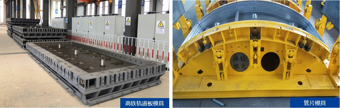 精密鋼膜是保證高鐵軌道板、軌枕、隧道管片、風電混塔塔片、裝配式建筑構(gòu)件等混凝土預制件各部位尺寸和形位精度的關(guān)鍵裝備。銀龍組建集研發(fā)設(shè)計、生產(chǎn)制造和安裝服務(wù)為一體的技術(shù)團隊,建設(shè)大型機加工車間、組焊車間、組裝車間,配置數(shù)控激光切割機、數(shù)控車床、數(shù)控加工中心等數(shù)十套高精裝備,用于生產(chǎn)軌道板、軌枕、管片等精密模具,加工精度可達0.01mm,已向國內(nèi)外多家預制構(gòu)件廠提供了數(shù)千套高精模具。
